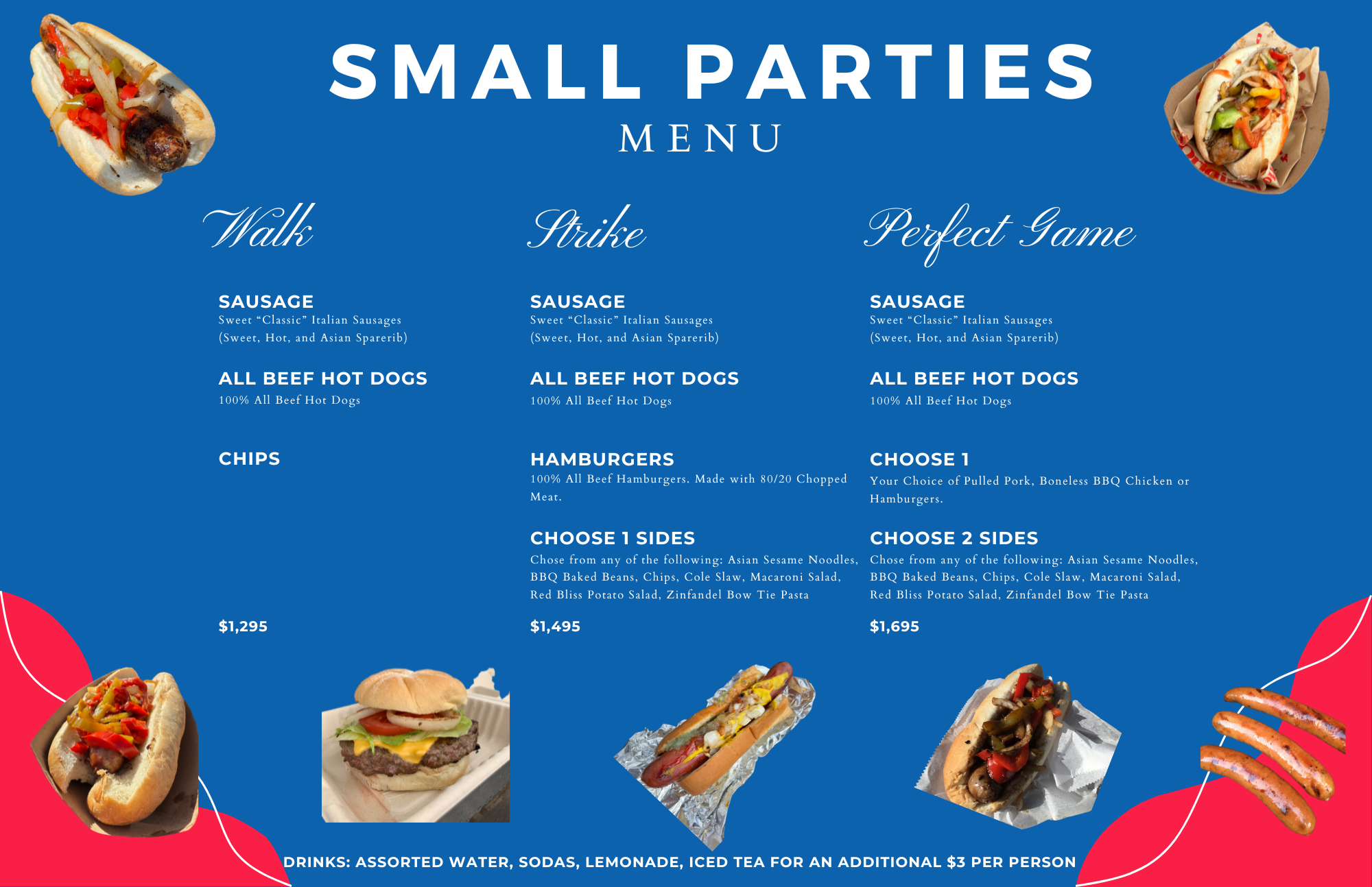 We offer a variety of menu options to fit your needs, from our classic sausages and hot dogs to hamburgers, pulled pork, and boneless BBQ chicken. Whether you're planning a wedding, birthday party, or work event, The Sausage Guy can bring a little bit of Fenway fun to your celebration.
