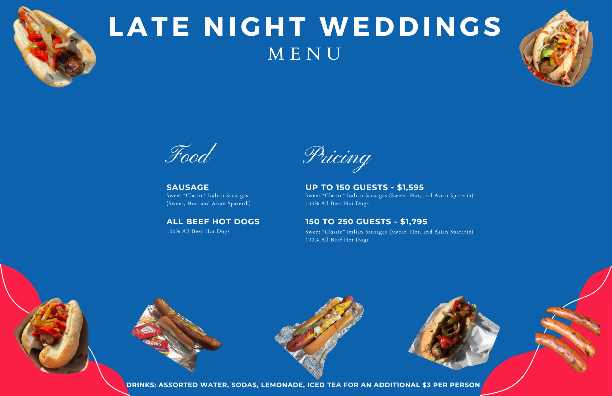 We offer a variety of menu options to fit your needs, from our classic sausages and hot dogs to hamburgers, pulled pork, and boneless BBQ chicken. Whether you're planning a wedding, birthday party, or work event, The Sausage Guy can bring a little bit of Fenway fun to your celebration.